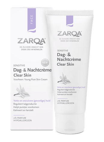 Een onrustige huid? Last van een overmatige talgproductie? ZARQA Dag- en Nachtcrème Clear Skin brengt de huid weer in balans dankzij de zuiverende, huideigen hydraterende stof zink. De milde crème hydrateert de huid en zorgt voor een matterend effect. Kalmeert en laat de huid soepel en zacht aanvoelen. Geschikt voor alle huidtypen, in het bijzonder de vette, onzuivere huid. Ook geschikt voor de meest gevoelige huidtypen.