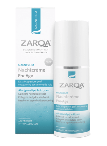 Tijdens je slaap neemt je huid de tijd te herstellen. Dode huidcellen worden afgestoten en maken plaats voor gezonde, nieuwe huidcellen. Om dit vernieuwingsproces te ondersteunen, is naast voldoende slaap een intensief herstellende nachtcrème geen overbodige luxe. Magnesium Nachtcrème Pro-age bevat onder meer magnesium PCA