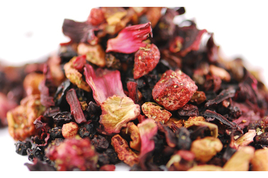 Ingrediënten: stukjes appel, zwarte bessen, natuurlijke smaakstoffen, gevriesdroogde stukjes braambes, aardbei en framboos, wilde aardbeibladeren