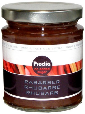 Rabarber 55%, zoetstoffen (maltitol, sorbitol), fructose, geleermiddel: appelpectine, citroensap. Bevat van nature aanwezige suikers (afkomstig van het fruit).