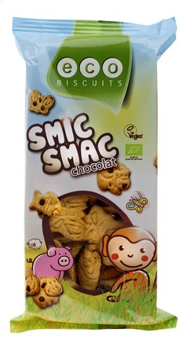 Smic smac, het kinderkoekje in de vorm van diertjes met chocolade. Voor de allerkleintjes en iets grotere kinderen. Gezoet met agavesiroop.